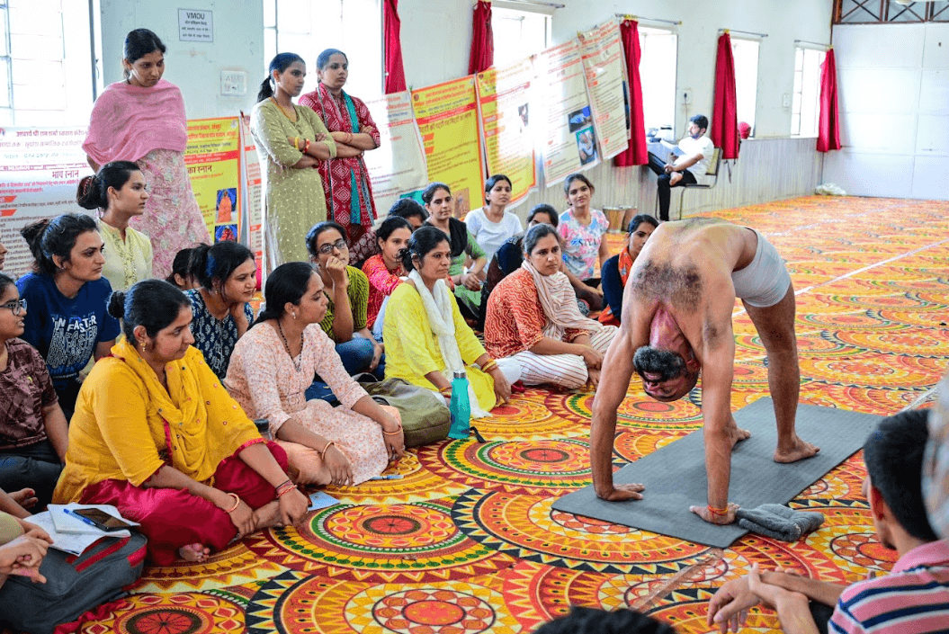 Guruji and the team actively participate in school workshops, Sanskar Shivirs, and Samaj Seva camps, spreading yoga to underserved communities.